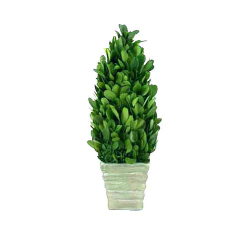 There are many uses for this lovely cone topiary…limited only by your imagination. This real boxwood is preserved and dyed for uniform color and long-term classic beauty, specially treated for a natural look and feel and sitting in a taupe clay pot. You will love the versatility of this product. Use anywhere you need to have that fresh look of greenery and beauty of an original looking piece which will bring the outdoors in.